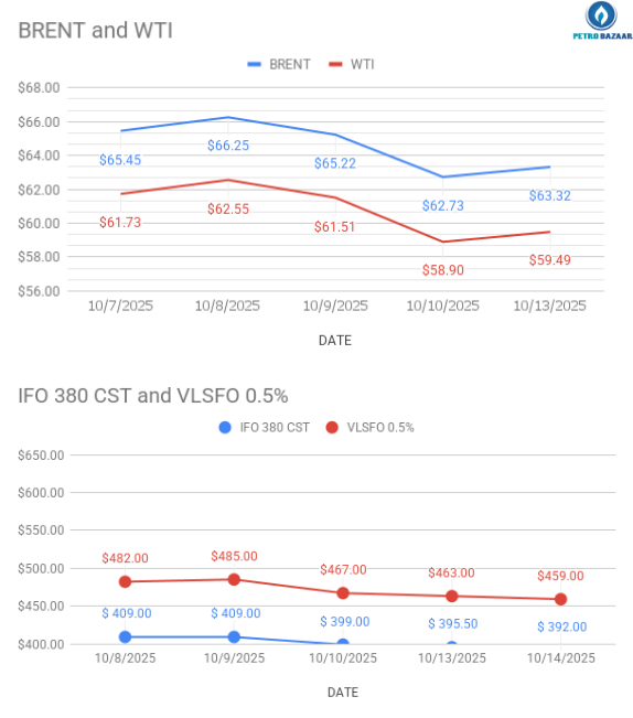 Fuel oil markets are weakening at Singapore markets in Asia. Fuel oil spot discounts deepened on weaker market structure. Both VLSFO and HSFO prices went down amid hefty stocks. FO LDO prices are set to change on 16th of Oct. No major changes expected.