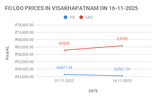 FO and LDO prices at Visakhapatnam depot for the second half of November 2025.